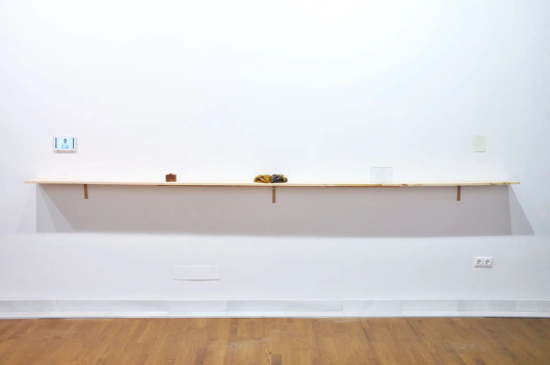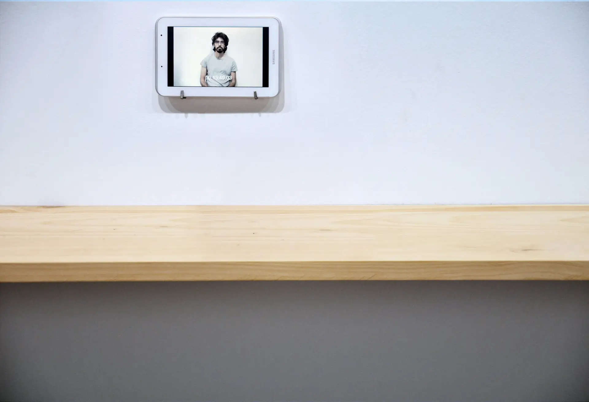 El primer elemento de esta secuencia es un vídeo del artista. En él aparece parado frente a la cámara durante una hora y sin hacer nada.