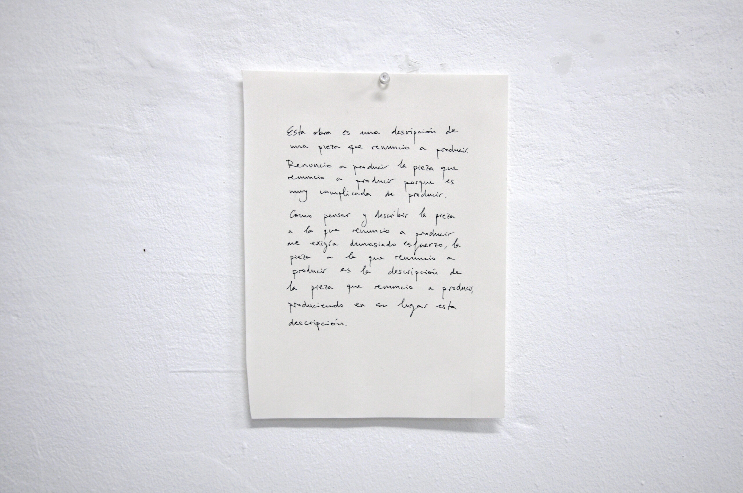 Esta pieza es la renuncia a la producción de una obra produciendo en su lugar esta descripción.